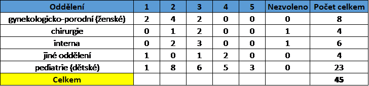 Výstupem je soubor ve formátu MS Excel, ve kterém jsou základní data dané nemocnice a také vyhodnocení všech otázek s přehledným zastoupením jednotlivých hlasů na oddělení.