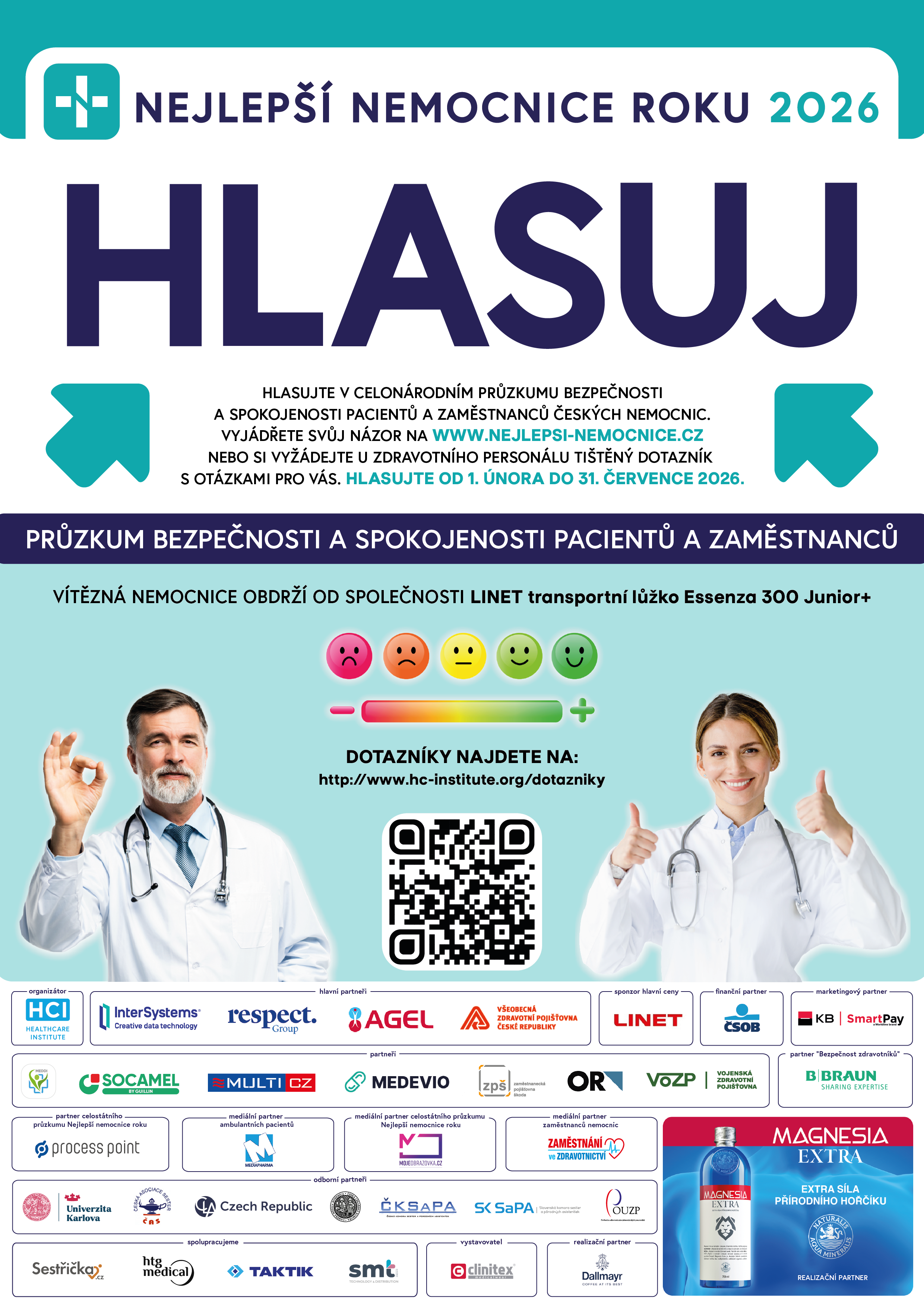 Hlasujte v tomto celostátním průzkumu v období od 1.2.2026 do 31.7.2026 a pomozte nám zvolit NEJLEPŠÍ NEMOCNICI ROKU 2026.