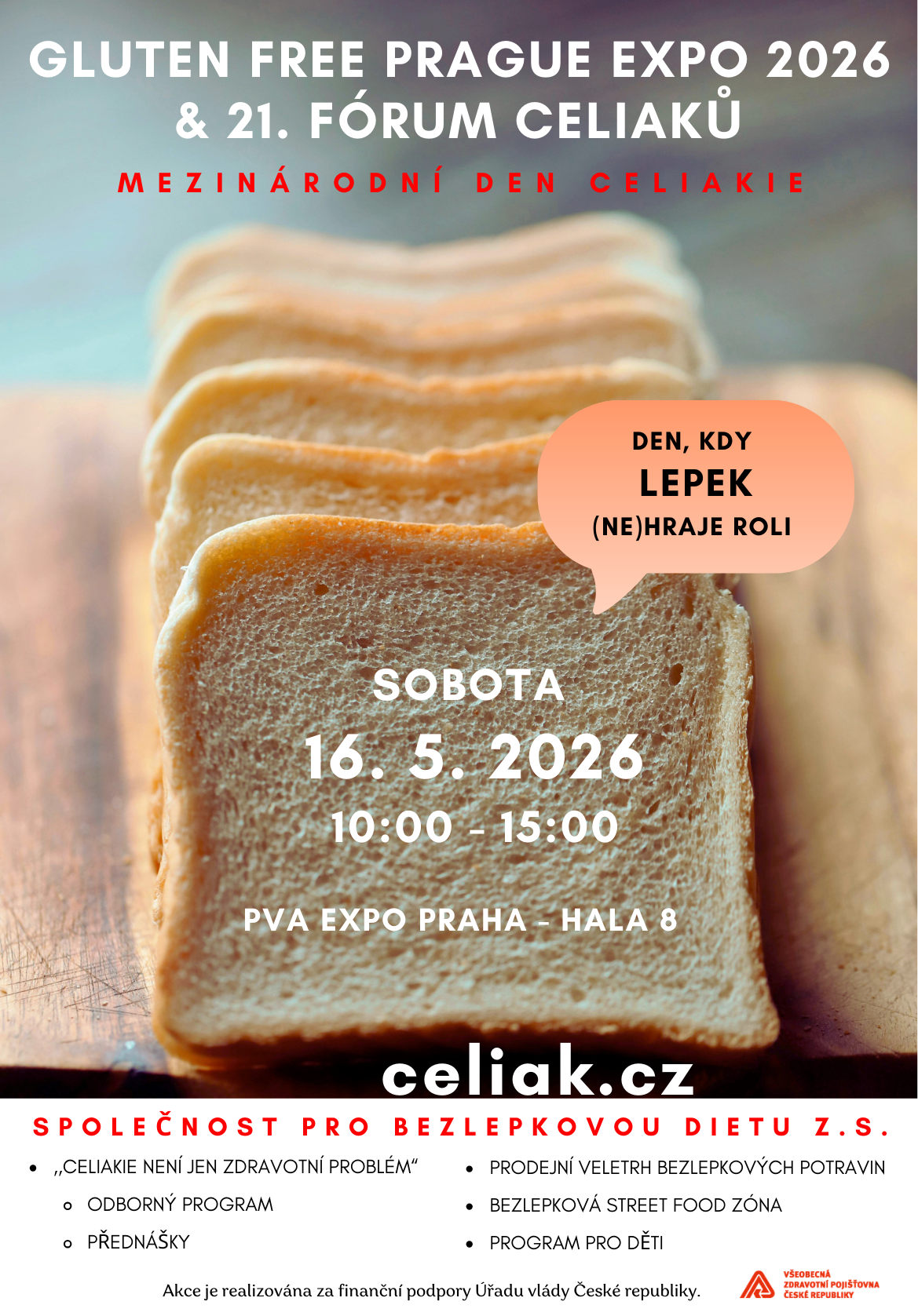 Společnost pro bezlepkovou dietu z.s. vás srdečně zve na 21. ročník unikátní akce pro všechny, které zajímá život bez lepku. Akce se koná u příležitosti Mezinárodního dne celiakie, pojďte ho oslavit s námi. Čeká vás jedinečné spojení velkého bezlepkového tržiště, odborných přednášek a prostoru pro sdílení zkušeností. Kromě novinek ze světa medicíny se dozvíte i výsledky nejnovějších kontrol potravin a restaurací nebo aktuální možnosti sociální podpory. Akce je určena pro celou rodinu – zatímco vy budete ochutnávat, nakupovat nebo čerpat nové informace, o vaše děti se postará doprovodný program.